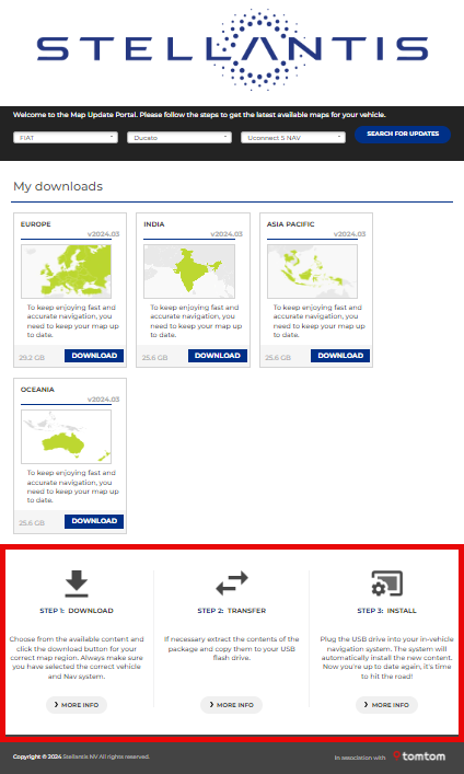 3. you can then check for updates and, if necessary, download new map material and transfer it to the navigation system. Instructions on how to transfer the map material to the navigation system can be found at the end of the download area on the Stellantis portal.