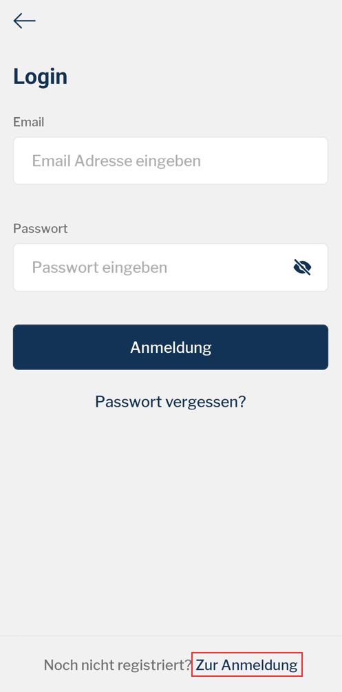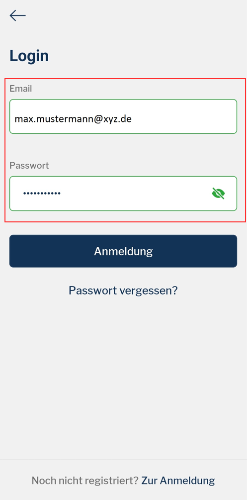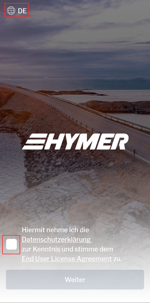Ahora se te redirigirá de nuevo a la aplicación, donde podrás establecer tu contraseña. Ahora puedes iniciar sesión en HYMER Connect App con tu cuenta recién creada.