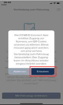 6. para poder escanear el código QR, debes autorizar a la app a acceder a la cámara. Por favor, autorice la aplicación, de lo contrario su vehículo no podrá conectarse a la aplicación.