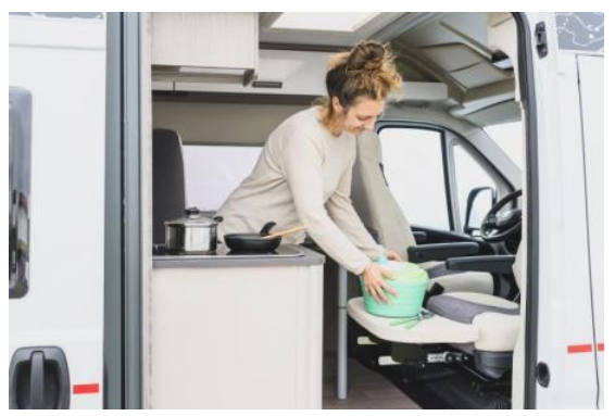 Puede utilizar el reposapiernas como superficie de almacenamiento adicional en la cocina. De este modo, se crea una cocina americana ampliada. No coloque objetos calientes o pesados sobre el reposapiernas.