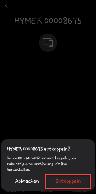 Pour ce faire, veuillez vous rendre dans les réglages de votre smartphone et supprimer la connexion Bluetooth existante avec votre véhicule comme indiqué. Celle-ci commence par les lettres HY. Après avoir retiré la connexion, vous pouvez démarrer la connexion à votre véhicule via l'appli HYMER Connect.