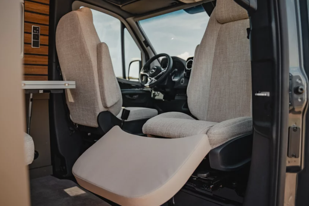 La sezione piedi del poggiagambe può essere fissata allo schienale del sedile passeggero durante il viaggio utilizzando la cinghia di gomma in dotazione.